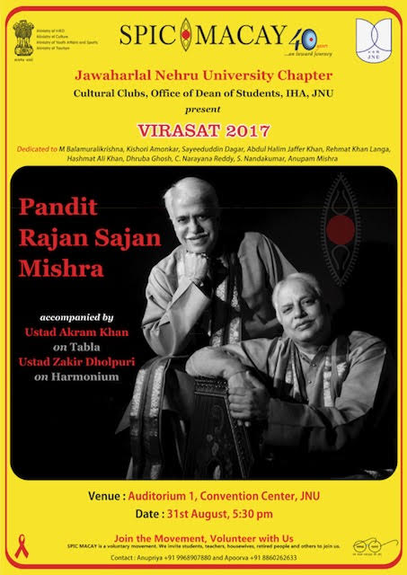 JNU with SPICMACAY organising VIRASAT 2017 on 31st August 2017.