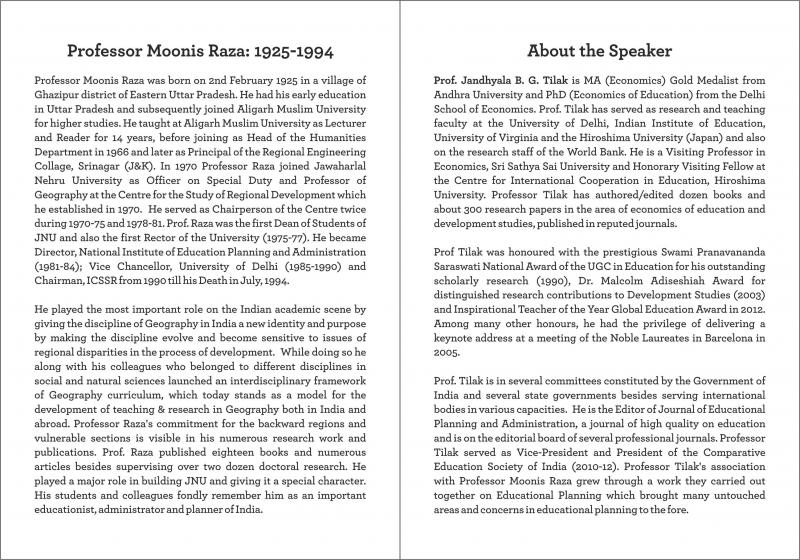 Memorial lecture : Prof. Jandhyala B. G. Tilak, Vice- Chancellor, NUEPA
