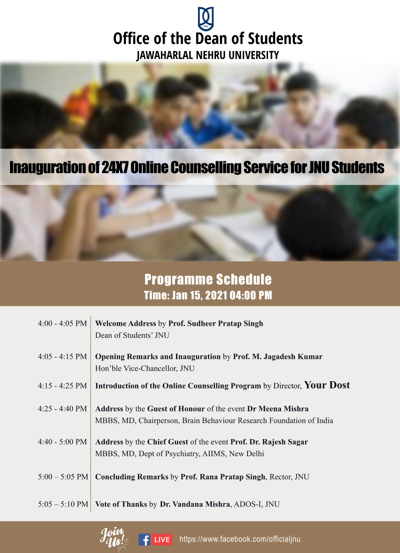 Office of DoS organises inauguration of 24x7 Online counselling service for JNU students